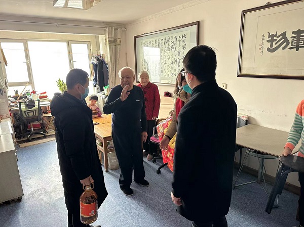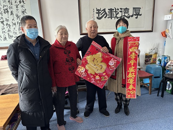 活动中,党员代表和志愿者向社区困难群众、高龄老人送去了福字、春联,并送上春节祝福,详细了解老人的身体状况及温暖过冬情况,还送去了米、面、油等慰问品。活动结束后,社区党委书记、居委会主任向中心赠送一面写着“共驻共建守初心、携手同行担使命”的锦旗。
