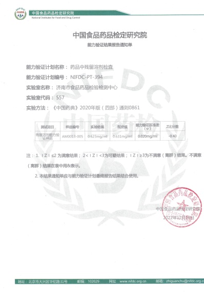 中心一直以来积极参加能力验证计划,凭借扎实的理论功底和过硬的操作水平,多次获得满意结果,证明出具检验报告的数据准确、可靠、有效,保证了检测工作的质量,同时表明实验室管理体系和质量保证能力的科学有效性,为泉城人民用药安全提供了强有力的技术支撑。