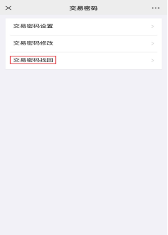 ②选择菜单中『交易密码找回』,输入姓名、身份证号、手机号。