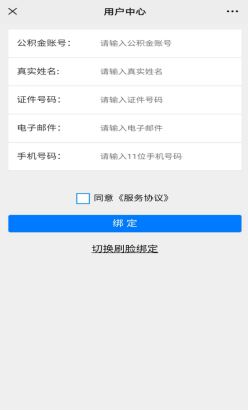 ①绑定:绑定后才能进行提取操作,如果已经绑定可跳过此步骤。点击右下角的『个人中心』,选择菜单中『解绑与绑定』。填写信息后点击绑定,页面显示“绑定成功”即可。(注意:账号绑定需填写个人公积金账号、姓名、身份证号码、手机号码、电子邮箱,刷脸绑定需填写姓名、身份证号码。)
