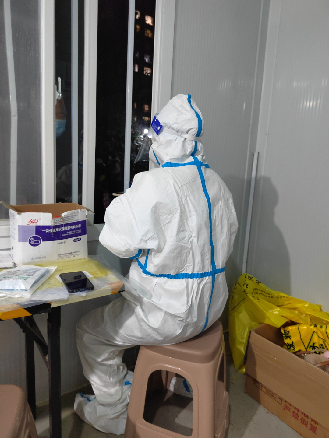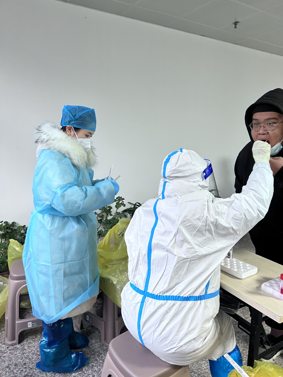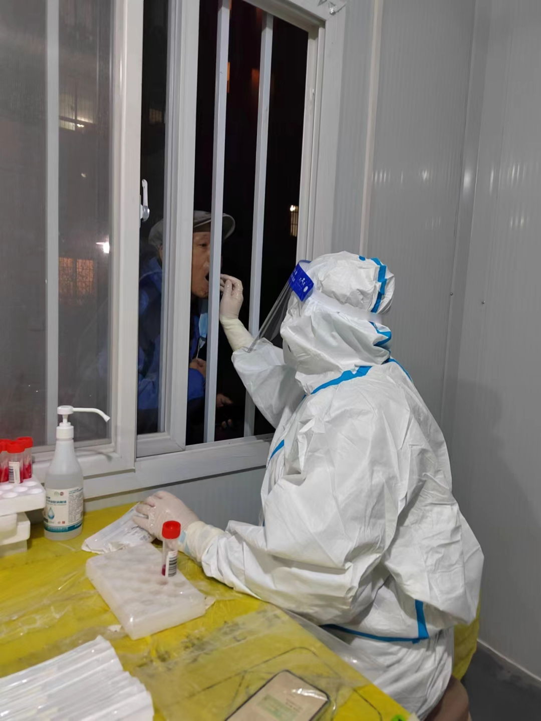 卢淼同志说“我是党员我先上”,第一时间来到社区参加核酸检测志愿服务。杨平同志承担了三个社区的核酸检测任务,检测完回家途中已经晚上9、10点钟,大多数小区已经封控了,偌大的马路上只有她一个人,虽然很累,却也很自豪,她说:“我在默默守护着我们的城市,我们的居民,愿我们的城市尽快康复。”王彬同志坚守在抗疫一线,当他看到医护人员因为检测棒不好取出而影响检测速度时,便想办法每日提前将当晚用到的近千条检测棒抽好供现场两组医护人员拉取备用,大大提高了核算检测速度。商珊同志与社区工作人员一起做好核酸检测准备工作,主动承担信息录入扫码工作,每天三个多小时的核酸检测工作,结束后虽然浑身酸痛,但是小区居民的一句感谢、小朋友的热情招呼、社区工作人员的认可,都使她感到无比的温暖。