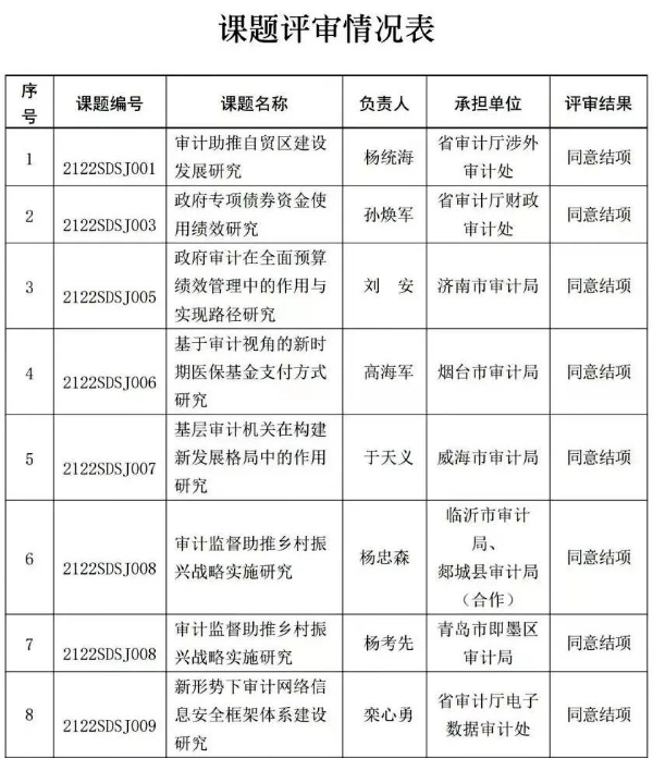 近日,省审计厅发布通知,市审计局财政审计处承担的省级重点科研课题《政府审计在全面预算绩效管理中的作用与实现路径研究》通过评审,予以结项。