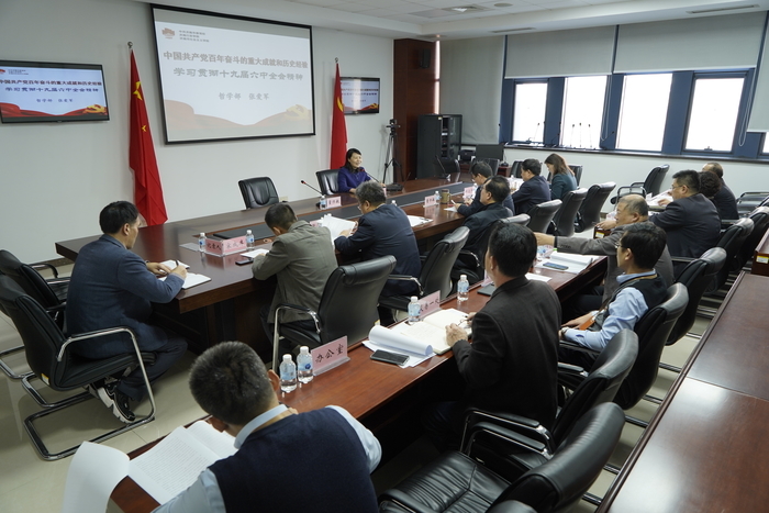 11月17日下午,中心召开党组理论学习中心组第九次集体学习会议,专题学习贯彻党的十九届六中全会精神。中心党组书记、主任董怀敏主持会议并讲话;市委党史学习教育第九巡回指导组组长窦进科、成员宋成库到会指导;市委党校哲学教研部主任张爱军教授以《中国共产党百年奋斗的重大成就和历史经验》为题作专题辅导讲座。