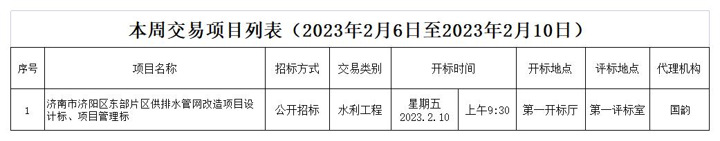 济南公共资源交易中心济阳分中心一周交易项目列表(2023年2月6月-2月10日)
