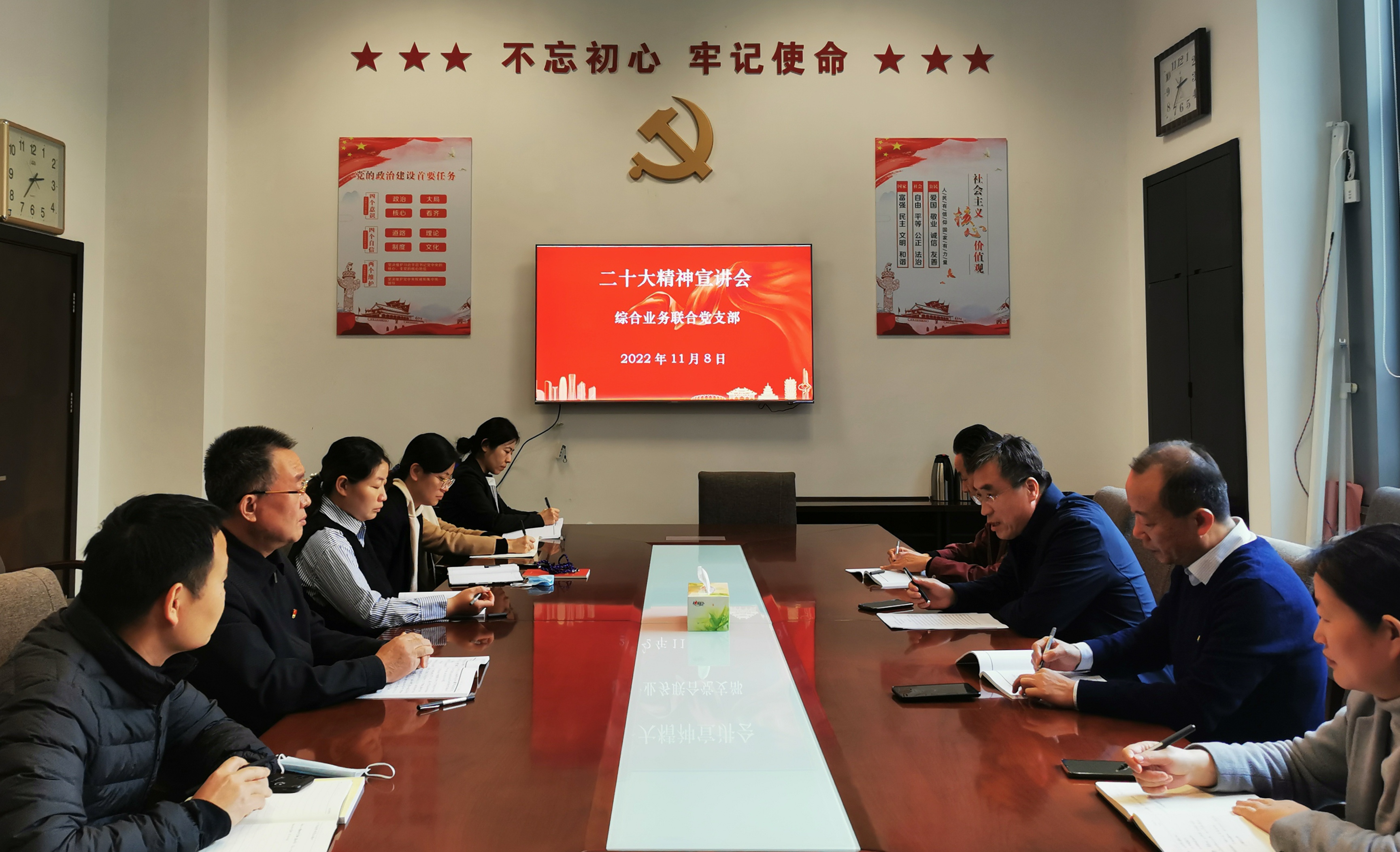 为深入学习宣传贯彻党的二十大精神,11月8日下午,中心党组副书记、副主任苗兴臣到所在党支部——综合业务联合党支部宣讲党的二十大精神,以《优化结算服务 助力省会发展 为实现党的第二个百年奋斗目标努力工作》为题上专题党课。统计调研处、会计业务处、内控检查处全体党员干部参加会议。