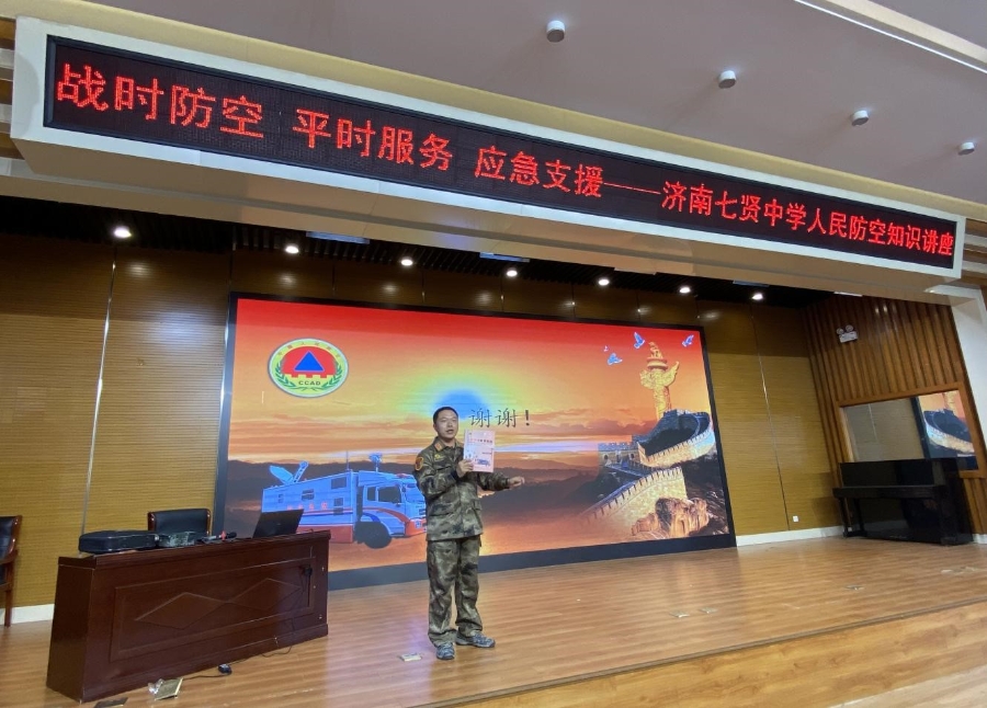 随着学校综合教育的发展,人防知识越来越被学校推进素质教育所需要,为增强辖区中学生对人民防空知识的了解和认识,提高防灾减灾的意识和能力。10月10日,市中区人防工程服务中心走进济南七贤中学开展人防知识进校园教育活动。
