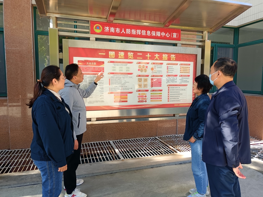指挥信息保障中心积极制作关于党的二十大的宣传展板,在千佛山南路值守的同志紧跟学习步伐,及时学习党的二十大报告内容,并展开热烈交流讨论。大家纷纷表示,要以饱满的政治热情和高度的政治自觉,认真学习、深刻领会,切实把思想和行动统一到党的二十大精神上来,把智慧和力量凝聚到实现党的二十大报告确定的宏伟目标和各项任务上来,在人防事业高质量发展中贡献自己的力量。