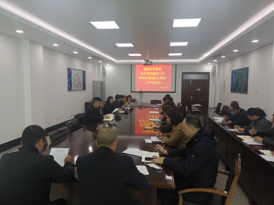 会上传达了槐荫区住建局高质量发展综合绩效考核工作实施细则(党建)。从党的基层组织建设、创建模范机关、机关效能建设、加强意识形态四个方面逐条梳理。机关党委书记就机关党的建设工作暨深化模范机关建设工作再提点要求,要进一步压实责任形成合力。