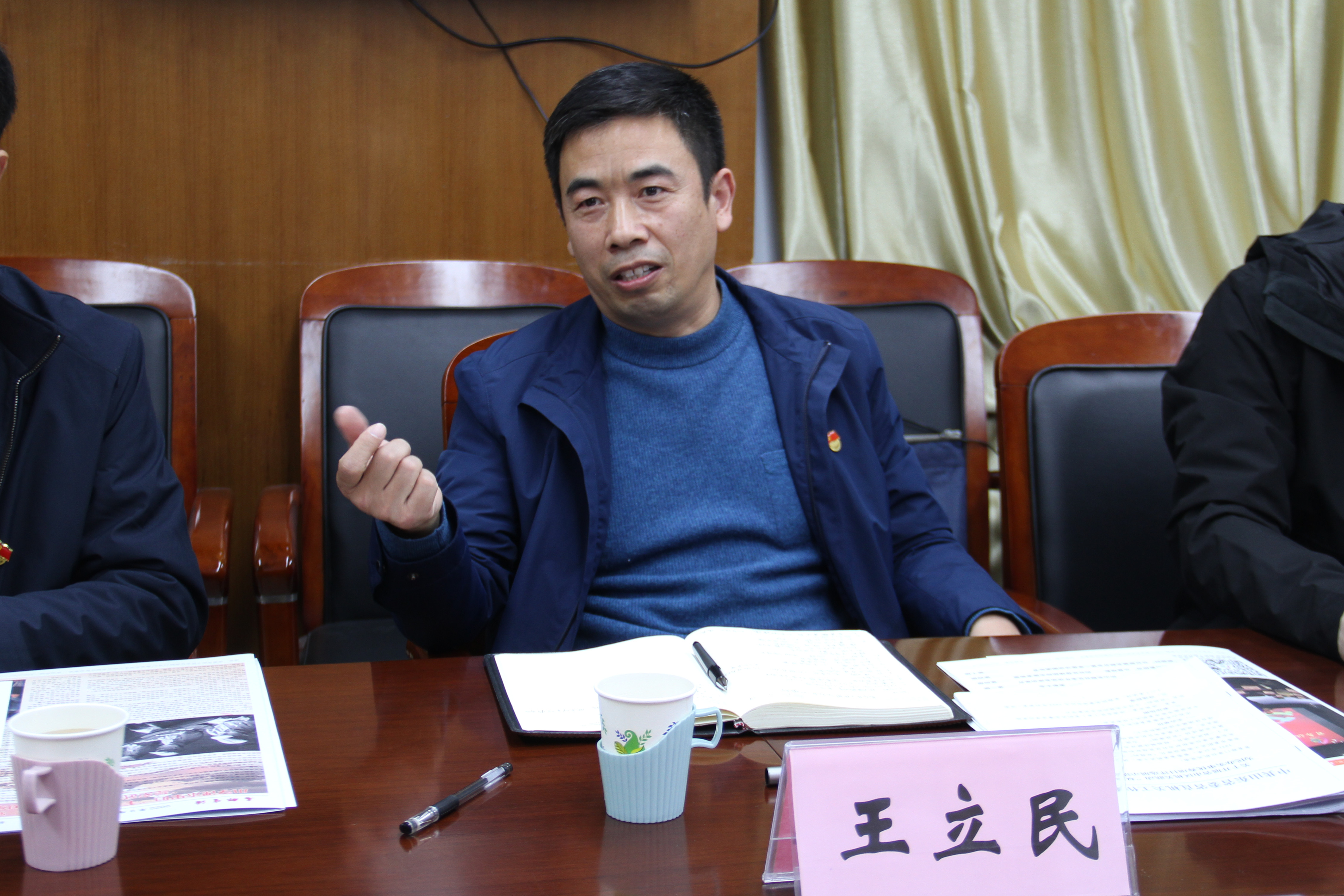 听取了腾飞书记的汇报后,山东省人民防空办公室机关党委副书记王立民表示,历山名郡社区坚持“走在前、做表率”,各项工作扎实深入,各项成绩名列前茅,在为人民群众办实事方面,值得省市区人防学习。王立民书记围绕党的二十大报告,以“践行初心 担当使命”为主题,进行理论宣讲。他指出,人民群众始终是推动发展进步的力量源泉,也是最强大、最坚实的依靠,每名党员干部都应做到紧紧依靠人民、时时惦记人民、事事为了人民。我们开展的省市区联动“双报到”社区活动要坚持实事求是,注重问题导向、目标导向、效果导向,聚焦基层所需、群众所盼,进一步将“双报到”工作做实做优,使人防工作更加深入人心。