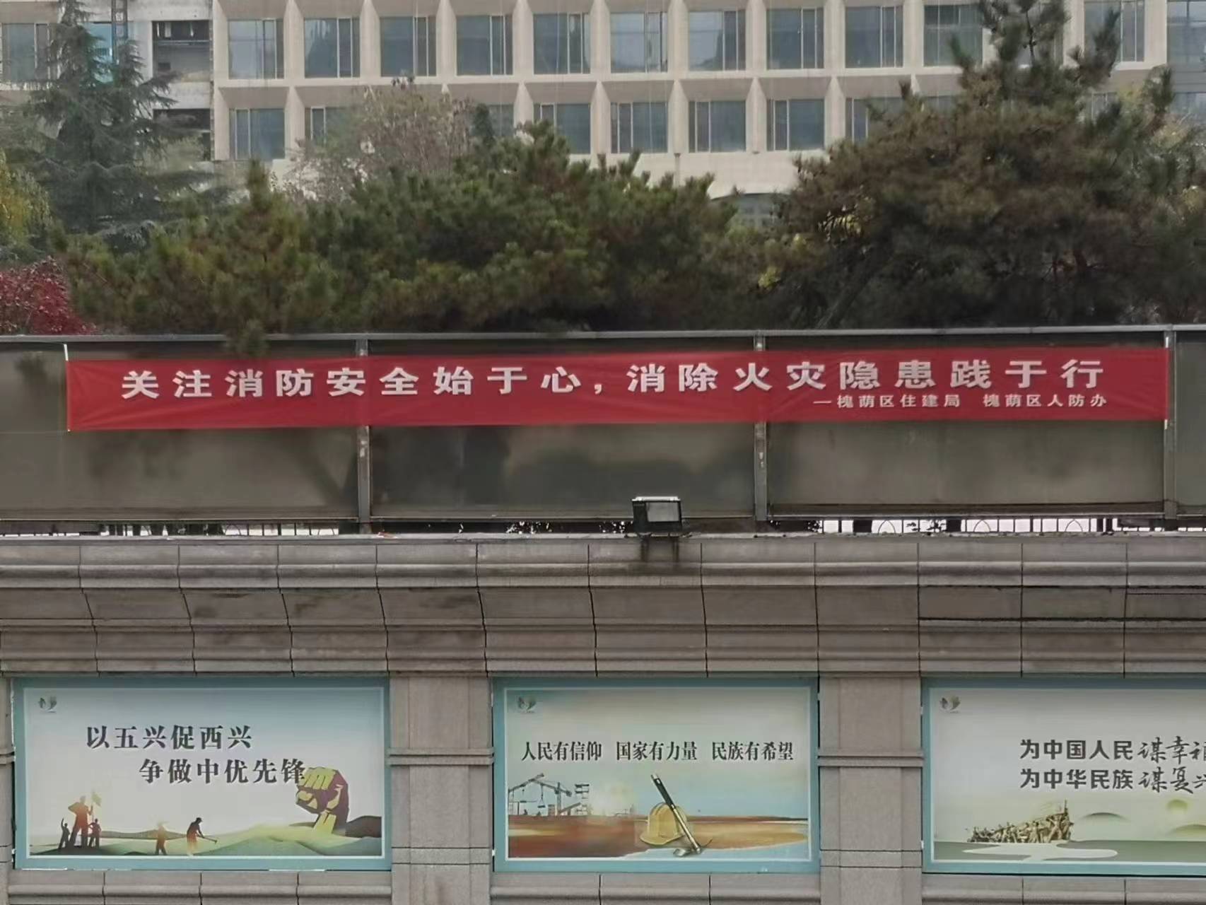 11月初,“消防宣传月”伊始,区住建局人防办即在机关驻地、槐荫广场、在建人防工程等处悬挂起“普及消防知识,强化消防能力”、“加强消防宣传,提高全民预防和抵御火灾能力”、“关注消防安全始于心,消除火灾隐患践于行”、等宣传条幅,开展社会宣传。同时组织在建工程、人防工程管理使用单位、物业管理企业等广泛开展“消防宣传月”主题宣传。11月11日,通过管理网络向人防工程管理单位推送“杭州冰雪大世界火灾”案例视频,要求各单位开展消防安全警示教育,培训全员开展,隐患全域排查,问题全部整改,责任全面落实。针对河南安阳“11.21”火灾事故,要求各单位切实加强员工安全教育培训,加强电气焊、气割等动火作业等特殊作业内部报备及监护,健全落实奖惩制度,严惩重罚违规违章作业,防微杜渐消除事故苗头,齐抓共管落实安全生产责任制。