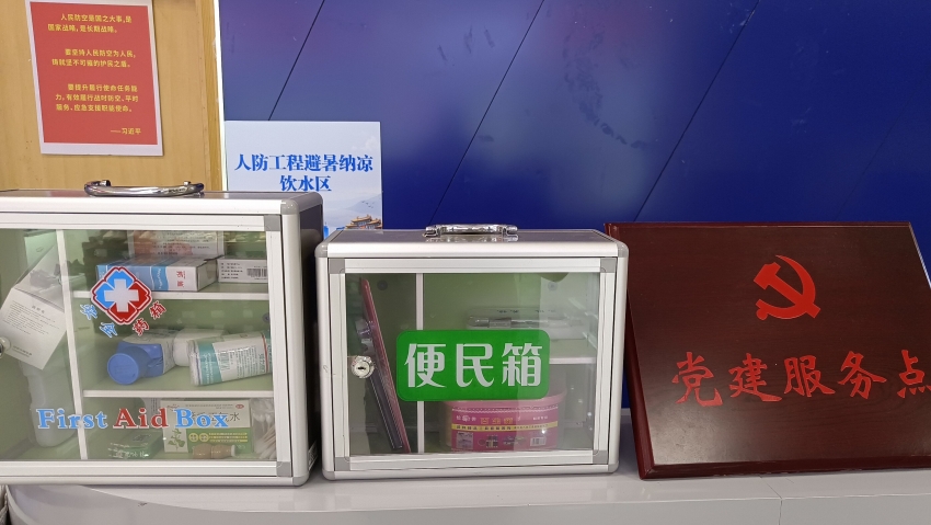 除了 WiFi 之外,纳凉点内摆放了一些桌椅,供市民使用。饮水机、无线网络、免费急救药品等也一应俱全,可谓最全的“避暑套装”。