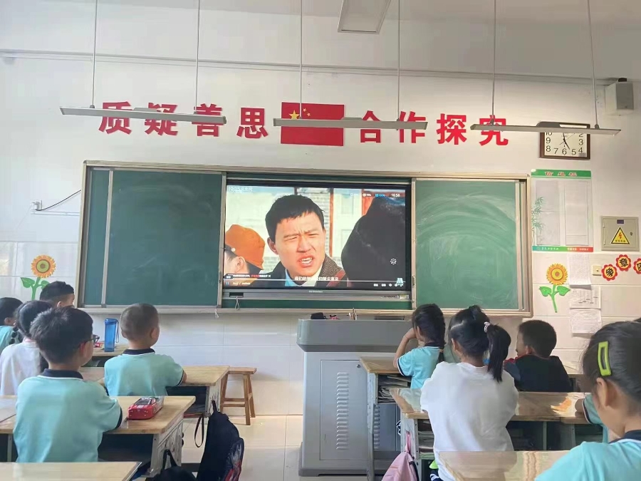 低年级的队员们集中观看影片《大劫难》,它是首部反映抗日战争的国产重点影片,教育部将该片定为纪念抗战胜利重点影片,影片选取发生在东北地区西台屯的真实历史事件,再现了“九一八”事变后东北平民的生活变化。队员们深深感受着当时中国蒙受的深刻苦难,感叹今天幸福生活的来之不易。