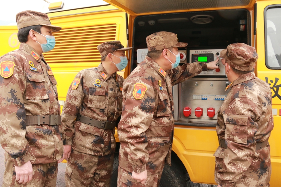 “XXX地区遭遇洪涝险情,我部立即赶往现场实施支援。”一声令下,参训人员迅速列队登车,赶往预定工程口部——威龙酒窖。面对预设险情,救援队员有条不紊的对移动排涝救险车进行展开及撤收,对排污潜水泵及送排风机进行实战性操作使用。在训练中练熟救援装备,练精救援技能,不断打磨团队协同救援能力。