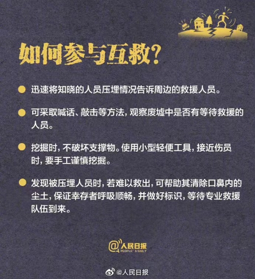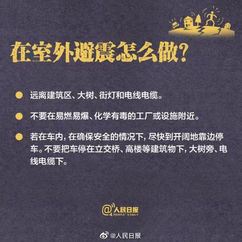 遇到地震时,使用哪种求生姿势最有效?在室内或室外避震怎么做?地震时遇到特殊危险怎么办?戳图学习↓↓尽早掌握避险技能,防患于未然,为守护自己和家人的安全多一份保障。