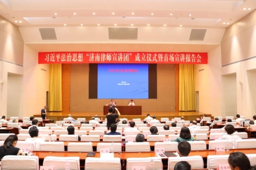 6月10日,习近平法治思想“济南律师宣讲团”成立仪式暨首场宣讲报告会在龙奥大厦举行。济南市委副书记杨峰出席会议并讲话,省司法厅党委委员、副厅长、省律师行业党委书记朱晓峰到会致辞,市委常委、政法委书记吕涛主持会议,副市长、市公安局局长王茂祯宣读活动实施方案,市中级人民法院院长李向阳,市检察院检察长鲍峰出席会议。