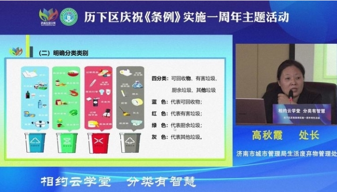 “分类一周年,时尚在兴起”,在《济南市生活垃圾减量与分类管理条例》实施一周年之际,日前,历下区城管局组织开展“相约云学堂,分类有智慧”特别活动,用开讲系列直播课的形式,再次掀起学条例、用条例的热潮。