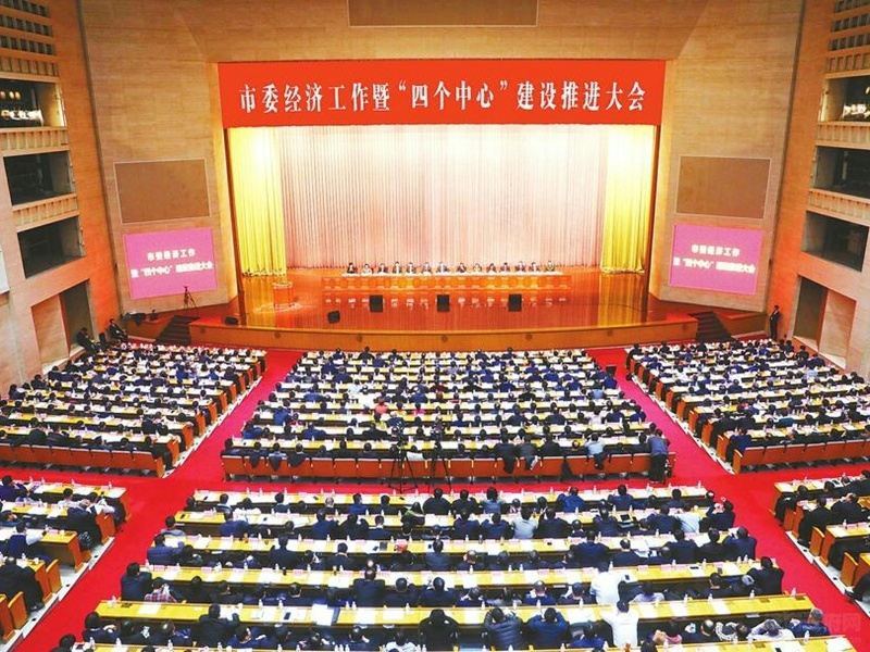 1月5日上午,市委经济工作暨“四个中心”建设推进大会在山东会堂召开,主要任务是以习近平新时代中国特色社会主义思想为指导,全面贯彻落实党的十九大和十九届二中、三中、四中全会精神,深入学习贯彻中央经济工作会议、省委经济工作会议精神,总结我市2019年经济发展情况,分析当前经济形势,安排部署2020年经济工作任务,签订“1+495”工作体系2020年度目标任务责任书,动员全市上下团结一心谋发展、撸起袖子加油干,加快打造“四个中心”,建设“大强美富通”现代化国际大都市,奋力开创省会高质量发展、高品质生活、高效能治理的新局面。