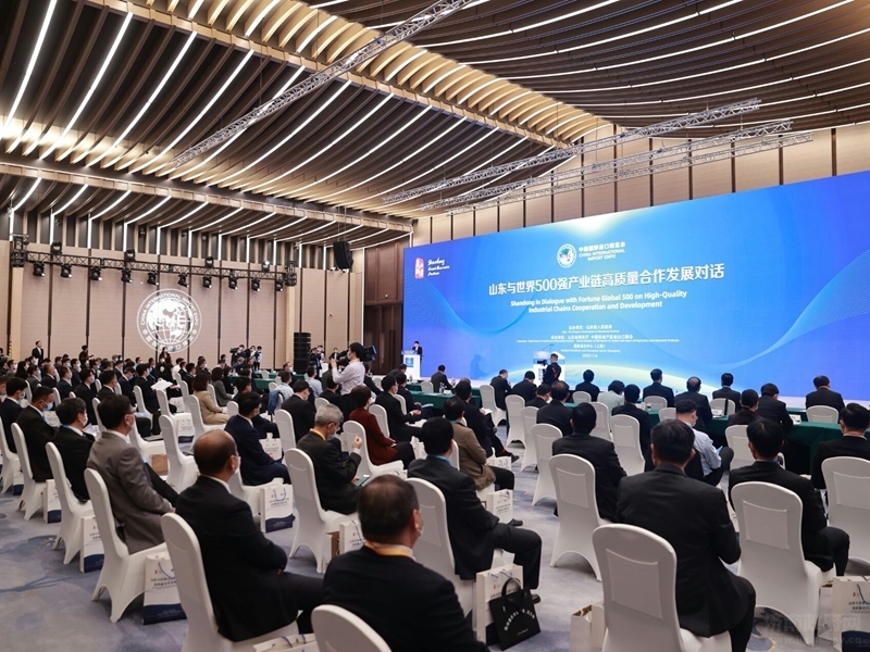 11月6日上午,山东与世界500强产业链高质量合作发展对话在国家会议中心(上海)举行,深入贯彻十九届五中全会精神和习近平总书记在第三届中国国际进口博览会开幕式上的重要讲话精神,共话产业链合作新空间,共谋高质量发展新机遇,携手提升产业链供应链现代化水平。省委副书记、省长李干杰出席并致辞。