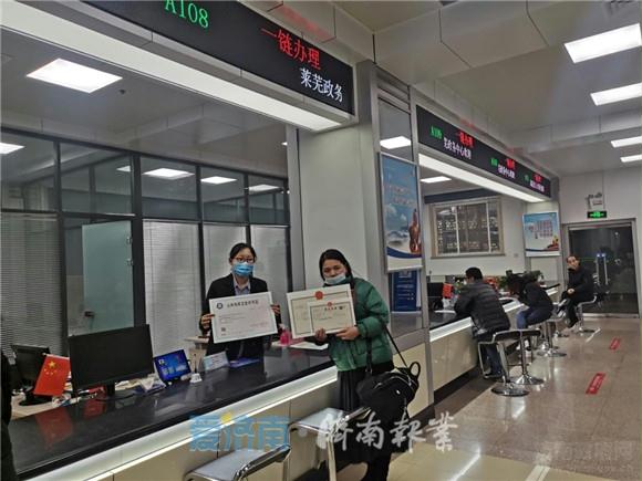 12月2日下午,莱芜区凤城街道的张女士在莱芜区政务服务大厅“一链办理”窗口,只填了一份表单,递交了一份材料,四十分钟就同时领取了开办美容店需要的营业执照和公共场所卫生许可证。次日,在同一个窗口,贺先生用了不到三十分钟就顺利领到了开办书店需要的营业执照和出版物经营许可证。虽然不是一起领到的证照,但张女士和贺先生说的话基本都是一样的,那就是“满意”和“方便”!