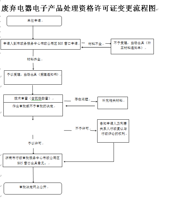 一、废弃电器电子产品处理资格许可证变更申请(含申请单位持证经营基本情况、许可证变更原因、许可证变更内容、申请变更事项、联系人及方式等) | 纸质材料 | 必要 | 无 | 无 | 无 | |