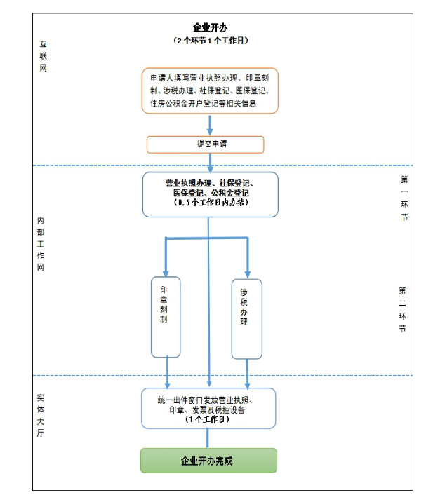 1.优化企业开办流程。6月底前,完善企业开办“一窗通”系统,简并采集营业执照申领、印章刻制、涉税办理等信息,全面推进电子营业执照应用。指导行政审批服务部门,为新开办企业免费提供印章,一并发放或免费寄递营业执照、印章、发票及税控设备,提供与企业开办、产业政策、税收等相关的法律法规“政策包”。(联系处室:登记注册处;电话:0531-88527323)