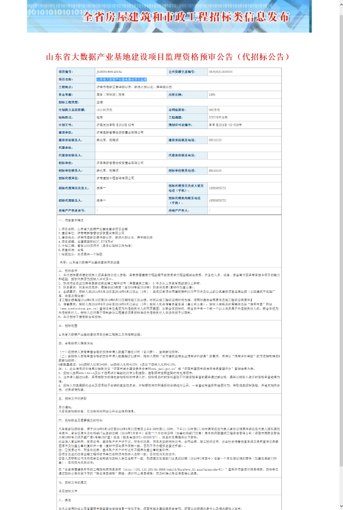 山东省大数据产业基地建设项目施工总承包中标公...