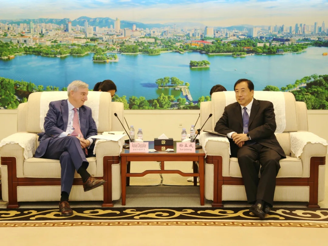 5月28日上午,省委常委、市委书记孙立成在龙奥大厦会见了西班牙驻华大使拉法尔・德斯卡亚一行。 拉法尔・德斯卡亚表示,西班牙与济南在经贸、教育、科技、文化、旅游等领域合作潜力巨大,许多西班牙企业已经扎根山东、济南发展。希望未来双方往来交流更加密切,多元合作更加深入,推动实现合作共赢。 |