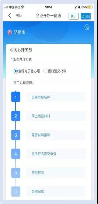 途径:在“爱山东”APP搜索“企业开办一窗通”,选择拟设立市场主体所在的地市,点击“开办企业(含申报名称)”,根据系统提示填报相关信息。