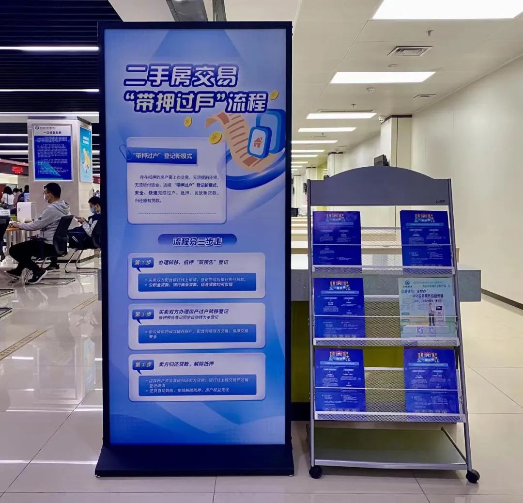 为确保“带押过户”模式快速有效落地,高新区不动产大厅多次组织业务推广培训会,加大宣传力度,通过发放手册、摆放易拉宝、电子屏播放等方式进行积极宣传。并在大厅设置了“带押过户”直通台,配备了“业务专员”,为办事群众提供一站式服务。