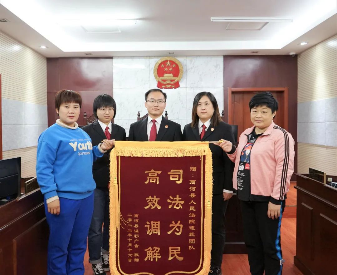 承办法官对双方公司的经营情况进行调查后,找到了案件突破口。彩虹公司的股东具有支付能力。承办法官与调解员又多次联系彩虹公司及其股东,股东同意支付款项,最终申请到资金。广告公司拿到款项后,顺利化解了公司面临的经营难题。事后,广告公司为商河法院速裁团队送来“司法为民 高效调解”锦旗,对承办团队表示真诚感谢。