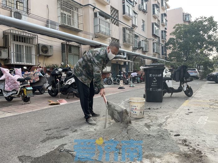 生茂得知此事,二话不说接下差事,一趟趟搬运水泥,一次次搅拌俯腰……一个多小时时间,三个大坑被他和伙伴们填补的平平整整。“应该好好表扬他们,愿意花力气、费时间为老百姓办实事,真让我们太感动了!”一旁的张阿姨高兴竖起了大拇指。