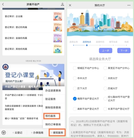(四)就近办理。槐荫不动产创新设立兴福街道便民服务大厅“外延窗口”和振兴街街道便民服务大厅“外延窗口”,并均已启动线上预约渠道,可供济南西站、和谐广场片区市民朋友“就近办理”,无需再到登记大厅扎堆办理。