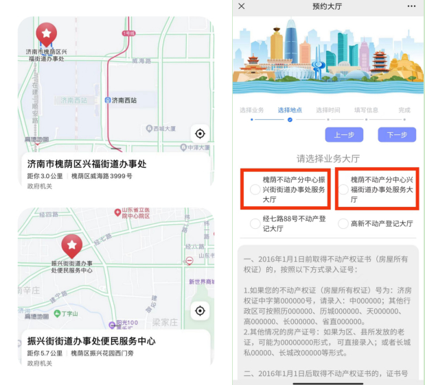 (四)就近办理。槐荫不动产创新设立兴福街道便民服务大厅“外延窗口”和振兴街街道便民服务大厅“外延窗口”,并均已启动线上预约渠道,可供济南西站、和谐广场片区市民朋友“就近办理”,无需再到登记大厅扎堆办理。