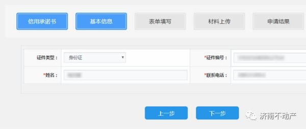勾选“我已阅读并同意上述《信用承诺书》”点击“下一步”,核对申请人基本信息,确认无误后点击“下一步”。