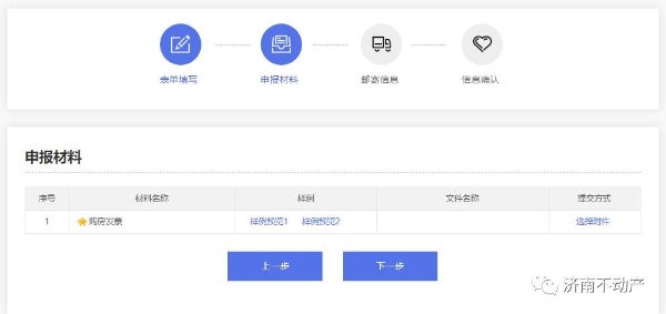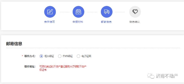 上传购房发票照片,点击“下一步”。选择领证方式。