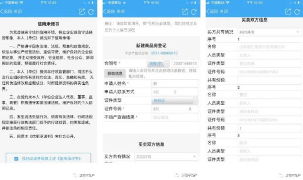 阅读信用承诺书并勾选确认,输入商品房销售合同编号提取业务信息,录入相关信息并确认。