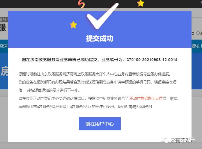 可前往首页,点击“登录名称”进入“用户中心”,随时查看业务办理进度,预审通过后会发送短信至您预留的手机号,并按短信通知的要求进行网上缴费、完税等操作。