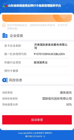 (1)如购买的实体卡上印有备案平台核发的二维码,可用手机微信扫一扫直接扫码查看预付卡信息,包括:经营者基本信息、卡余额、资金风控机构类型、名称、资金监管比例等信息。如有异议可通过查询界面的“投诉举报”进行相关投诉。