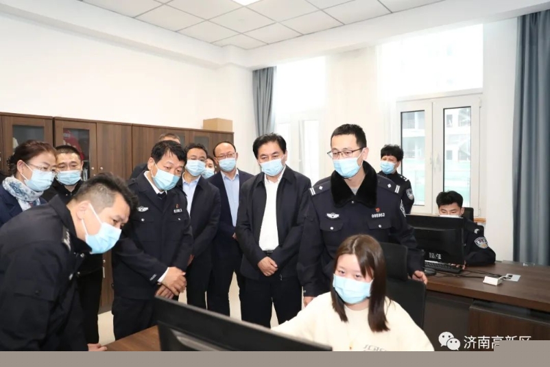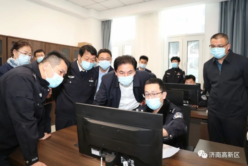 在舜华路派出所,王宏志仔细察看防控信息平台,详细了解派出所信息核查、排查随访等工作流程,对公安推送数据排查随访情况进行实地调研。