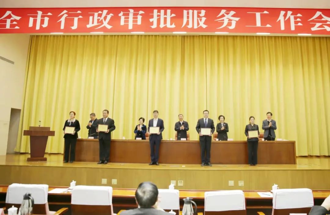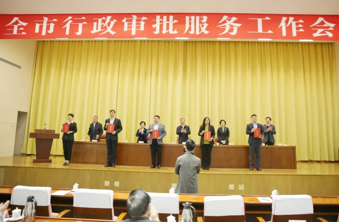 会上为2021年度文明政务服务最美大厅代表、“标准强服务”劳动竞赛和“项目管家当先锋”劳动竞赛获奖代表、2021年行政审批服务创新案例单位代表颁发了获奖证书。