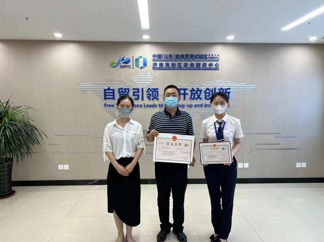 针对周先生的情况,济南高新区审批服务部立即启动“跨省通办”模式,专人全程指导帮办,很快通过当地政务服务网完成了远程申报。工作人员“点对点”与临夏县相关部门联络员对接,即时跟进解决申报过程中的材料修改、人员签字等问题,周先生的营业执照当天就注册成功了。帮办人员还第一时间协助其下载了与纸质营业执照同等效力的电子营业执照,为公司尽快开展业务、抢占商机奠定了基础。