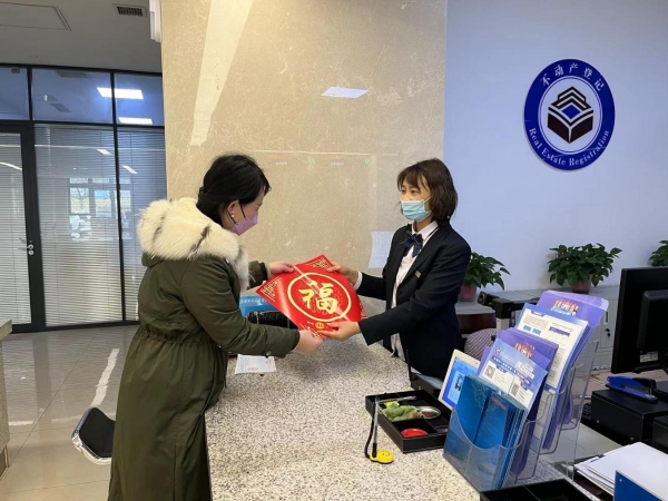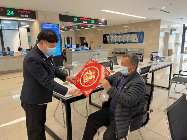 一张张“福”字映在红红火火的纸上,饱含着祝福和喜庆。一位老人在办理过户的同时,喜获“福”字一贴,老先生开心地和不动产登记中心的工作人员说道,他一直居住在农村,家里儿女孝顺和睦,看他年事已高,为便于照顾他,特意在城区给他买套房子安度晚年。今天一家人开开心心来办理房屋过户手续,没想到,不动产登记中心不但高效率办好过户手续,还提供了这么贴心的服务,让他收获到带有新年气息的特殊“福”礼。