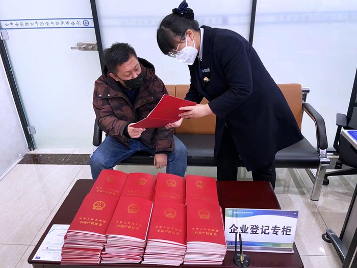 据悉,该企业购买了数量比较多的房产,因发展需要,急切地想在2023年春节到来之前,完成证书的集中办理。但是面对数量庞大的房产,不知该如何办起,只能是通过“企业服务管家”向槐荫不动产登记分中心登记申请求助。在接收求助的第一时间,槐荫不动产登记分中心立即启动“企业专项服务预案”,开通“全窗口”企业服务通道,调度业务受理人员30余人次,接连多日在下班之后集中为企业提供延时服务,前后共计办理505笔业务。在业务申请完毕的第二个工作日,企业就顺利领取到了不动产权证书。春节之前能够顺利拿到鲜艳的“红本本”,对企业来说无疑是最好的“新年礼物”,同时也给企业新一年的顺利发展带来了强烈的安全感和自信心。