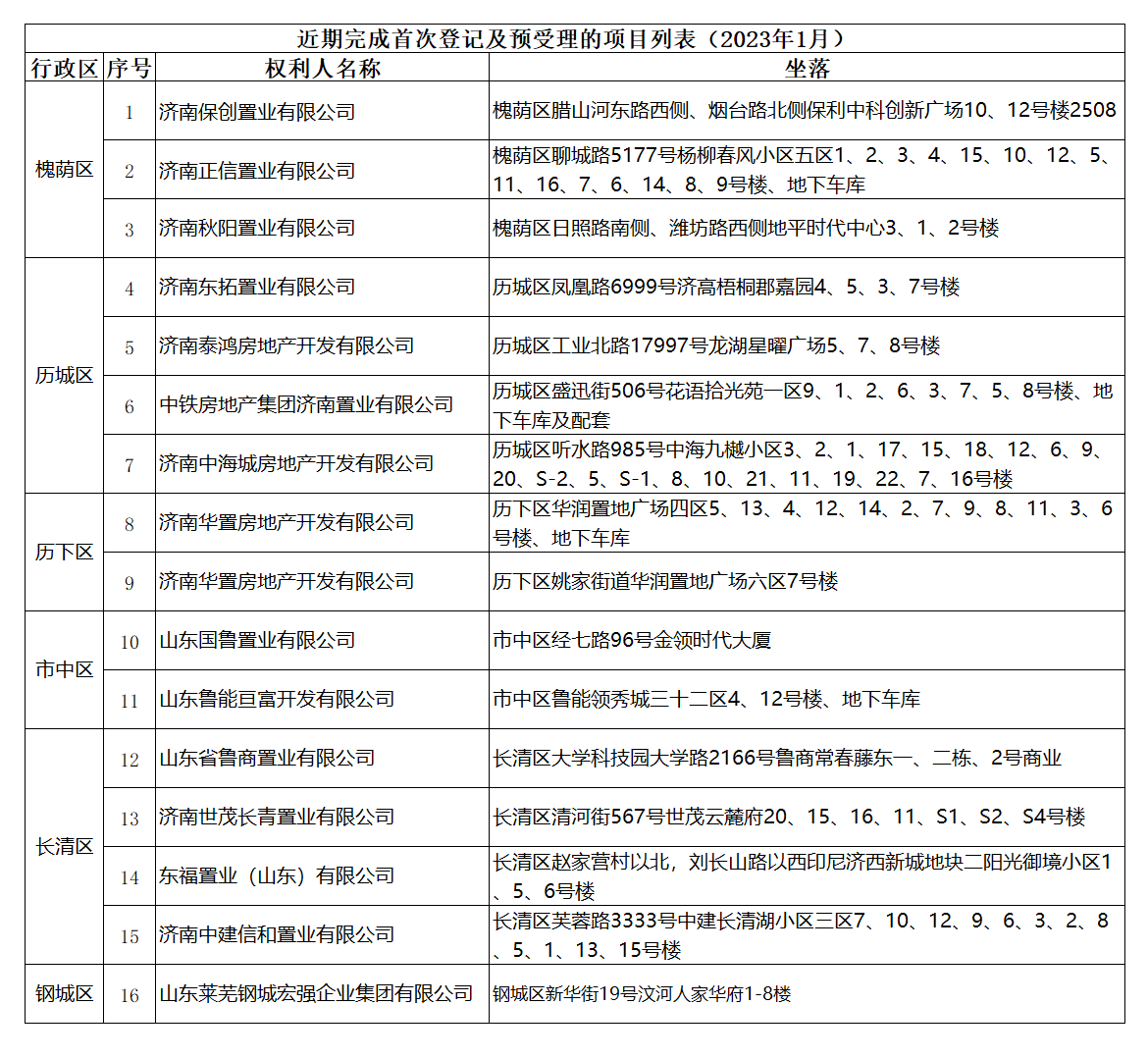 【信息公示】可“交房即办证”项目列表(2023年1月)