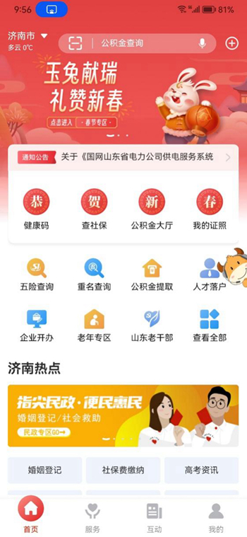 “爱山东”济南分厅内提供了种类完备、数量丰富的政务服务事项,更加注重服务优化整合,极大丰富了掌上集成服务场景。