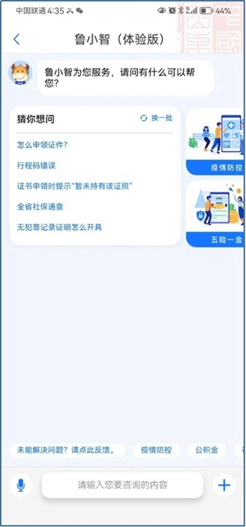 为有效疏解企业群众政务服务业务办理“咨询难”的堵点、痛点问题,经过深入调研分析,“爱山东”济南分厅3.0上线了智能客服功能,可提供7*24小时自动化客户咨询服务、人工客服转接、问题应用一键跳转咨询、语音识别输入……及时为用户答疑解惑。