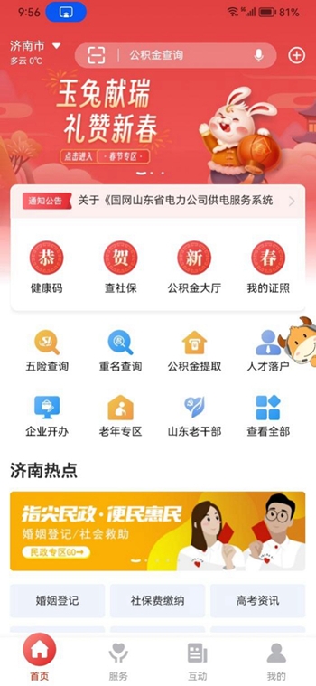 近日,随着“爱山东”3.0版本发布,济南分厅也全新上线。“爱山东·泉城办”APP内应用服务已全部入驻“爱山东”济南分厅(包含APP、微信小程序和支付宝小程序),新版“爱山东”济南分厅立足用户在不同场景下的需求,更加注重服务事项的聚合分类,着力打造人社、公安、医保等便民服务专区,累计接入超2000项政务服务,让企业、群众办事更便捷。