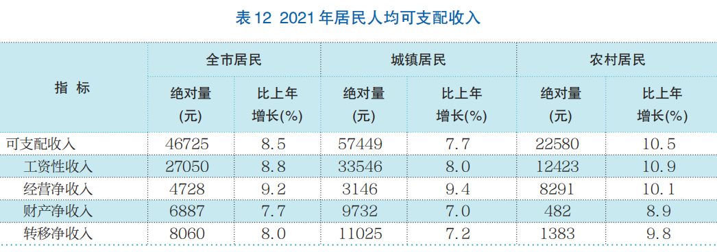 居民收入稳定增长。全年居民人均可支配收入46725元,比上年增长8.5%。其中,城镇居民人均可支配收入57449元,增长7.7%;农村居民人均可支配收入22580元,增长10.5%。居民人均消费支出30016元,增长8.4%。其中,城镇居民人均消费支出36866元,增长7.2%;农村居民人均消费支出14591元,增长12.7%。城乡居民收入比由上年的2.6:1缩小至2.5:1。城镇居民恩格尔系数为23.5%,农村居民恩格尔系数为30.5%。 社会保障范围更加广泛。年末城镇职工基本养老保险参保人数472.7万人,比上年增加35.4万人;职工医疗保险参保人数336.2万人,增加22.7万人;失业保险参保人数226.9万人,增加13.3万人;工伤保险参保人数293.5万人,增加14.9万人;生育保险参保人数235.8万人,增加22.6万人。居民养老保险和医疗保险参保人数分别达到308.4万人和506.9万人。 居民生活保障稳步提升。城市居民最低生活保障标准每月904元,保障城镇居民0.9万户、1.3万人,发放保障金及各类补贴1.3亿元;农村居民最低生活保障标准每月676元(其中,市中区、槐荫区、天桥区、历城区、济南高新区为904元),保障农村居民5.9万户、8.4万人,发放保障金及各类补贴5.7亿元。城市特困人员基本生活标准每月1356元,农村特困人员基本生活标准每月1179元(其中,市中区、槐荫区、天桥区、济南高新区为1356元),城市特困保障745人,农村特困保障1.4万人,共发放特困供养救助金及补贴2.9亿元。照料护理标准按照自理、半自理和完全不能自理分三种档次,自理标准提高到231元/月,半自理标准提高到385元/月,完全不能自理标准提高到770元/月。 救助帮扶工作趋步向稳。全市共有救助管理站2处,未成年人救助保护中心1处。培训残疾人4116人次,安置残疾人员就业2102人,帮扶救助残疾人投入资金2.8亿元。(2021年济南市国民经济和社会发展统计公报)。